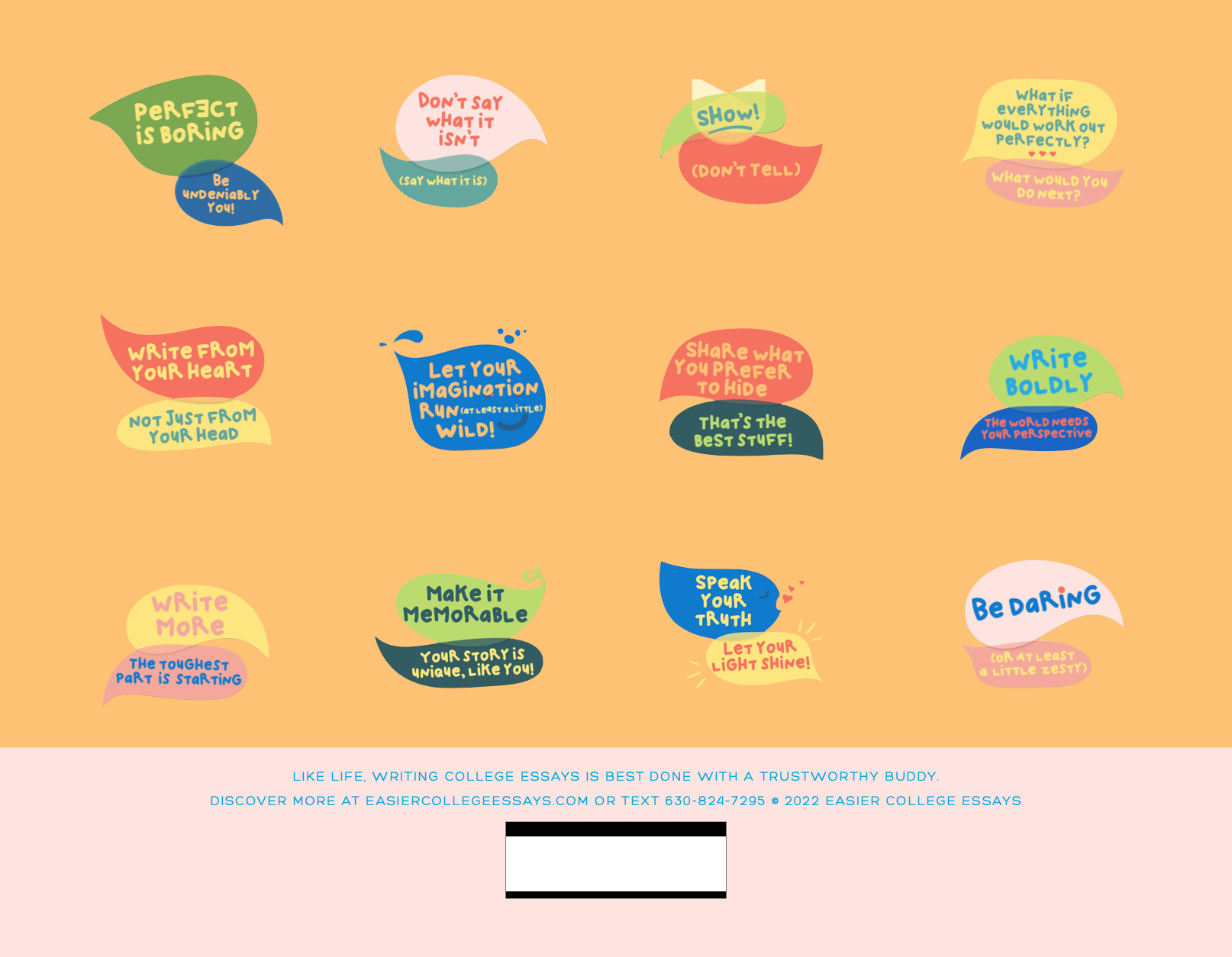 The Easier College Essays calendar of 2023 combines funky text bubbles with inspirational reminders for humans of all ages who write stuff. Make this wall calendar the newest accessory to your home, office, or home office!